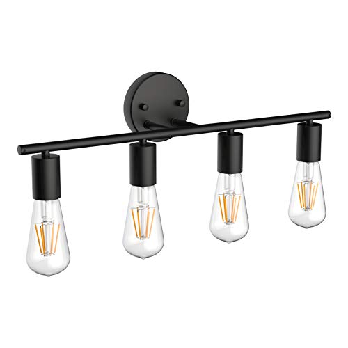 Klighten Vintage spegelbelysning badrum, industriell E27 spegellampa 4 flammor, badrum badrum vägg, svart metall vägglampa inomhus vägglampa, längd: 56 cm/22 tum, utan ljuskälla