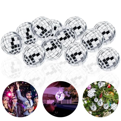 Sunshine smile Liten spegelkula, 12 st mini discokula, silver hängande kula, silver discoboll, silverspegelkulor, discoboll för fest, spegelboll, klassisk discokula, juldekorationer, julgranskulor