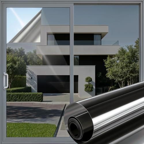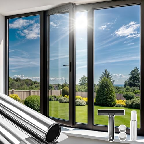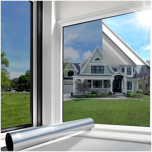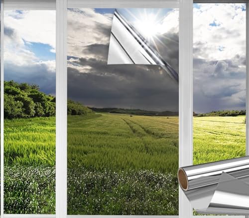Qualsen Spegelfilm för fönster, fönsterfilm, värmekontroll, anti-UV, perspektiv, sekretessfilm lämplig för hemmakontor (silver-silver, 44,3 x 200 cm)