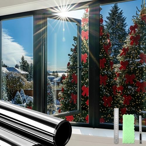 DIFIT Fönsterfilm, anti-blick, spegelfilm för fönster utan tain, mörkläggande fönster, anti-UV, solskydd, värmebeständig, elektrostatisk film, hem, kontor (svart - silver, 44,3 x 200 cm)