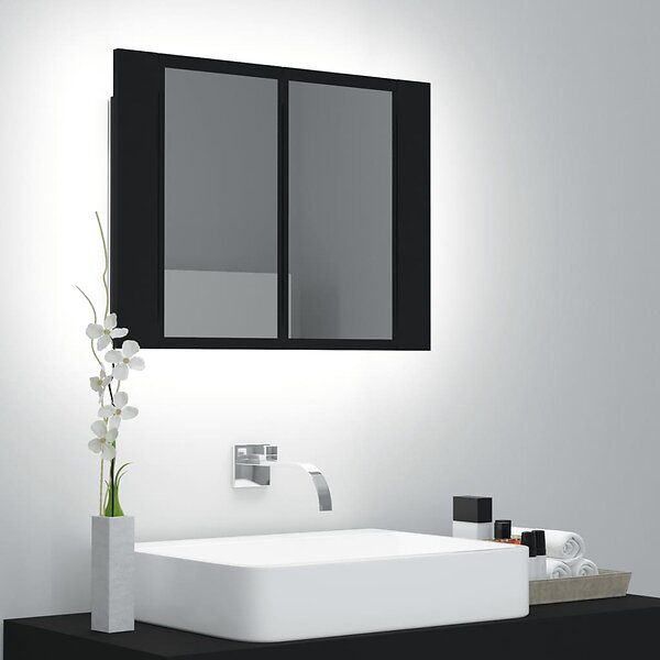 vidaXL Spegelskåp med LED svart 60x12x45 cm akryl 804957
