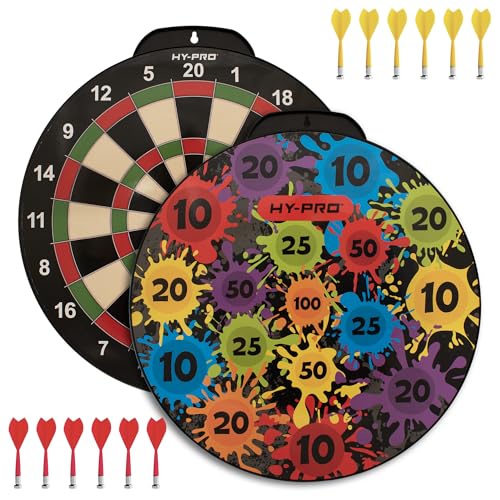 Hy-Pro Magnetisk darttavla – dubbelsidig, säkert dartspel, dartboard för barn, 12 dart, 4 olika spel i 1, 18 tum, inomhus och utomhus, magnetiskt dartboardspel, från 3 år