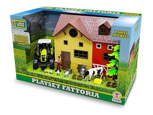Teorema Giocattoli, Leksaksdjur bondgård med stall, traktor med ljus och ljud, ko och många tillbehör, pedagogiska spel 3 år, leksaksstall