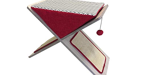 UNITED PETS X-Cat 3-i-1 designklösträd för katter, klösträd, kök och spel. Träklösträd med husdjur/kudde och boll. Röd