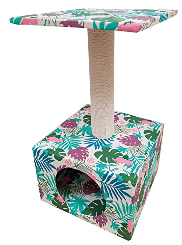 Croci Green Leaves High - 62 cm hög kolumn klösträd för vuxna katter stora och små, Klöströjor trädskrapning, tillbehör och djurspel, lugnande spel för katter