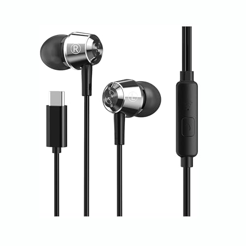 HAPPYAUDIO W1 USB-C trådbundna hörlurar, Type-C hörlurar med mikrofon och klart ljud för spel, sportsamtal, metallkroppsdesign kompatibel med Galaxy Note, Google