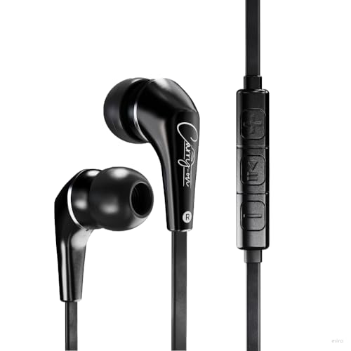 Carry-on EB50 trådbundna hörlurar, in-ear hörlurar, trasselfria, inbyggd mikrofon, bärfodral, för laptop, surfplatta, Ipad, telefoner, spel - Svart