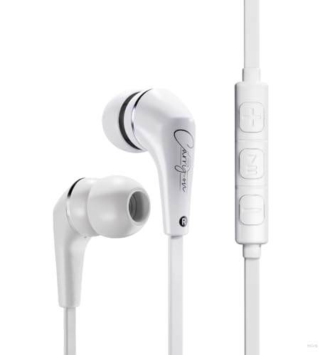 Carry-on EB50 trådbundna hörlurar, in-ear hörlurar, trasselfria, inbyggd mikrofon, bärfodral, för laptop, surfplatta, Ipad, telefoner, spel - Vit