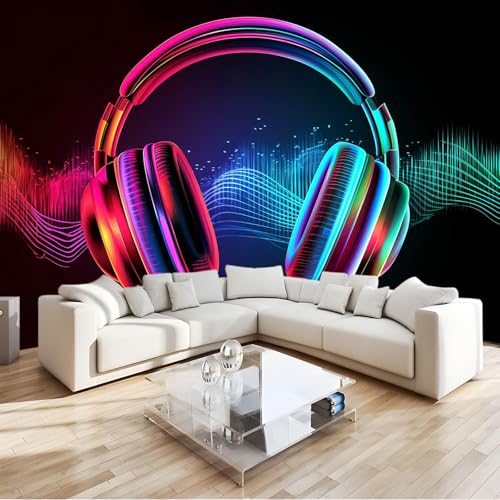 Neon väggmålning tapet spel musik hörlurar premium icke-vävd konst fotodekaler, för heminredning barn sovrum inredning B 400 x H 280 cm