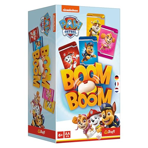 Trefl - Boom Boom, Paw Patrol - Dynamiskt familjespel, spel med en klocka, spel för hela familjen, kortspel med hjältar i TV-serien Paw Patrol, familjespel för barn från 6 år