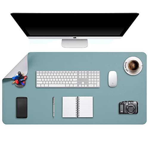DOBAOJIA Skrivbordsunderlägg, kontorsmatta, tangentbord och musmatta, bärbar matta, skrivdyna, musmatta XL, för kontor/hem/spel, dubbelsidigt PU-läder 120 x 60 cm (grågrön/grå)