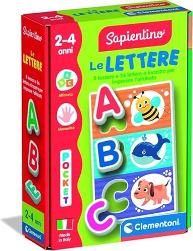 Clementoni Sapientino Le Lettere, pedagogiskt spel för barn 2–4 år med kort för att lära sig alfabetets bokstäver, tillverkad i Italien, italienska språket, 16862