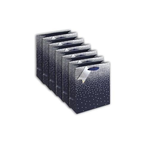 Clairefontaine 30864-3Cpack - ett set med 6 utmärkta presentpåsar - medium format - 21,5 x 10,2 x 25,3 cm - 210 g - mönster: stjärnor på silverbakgrund - presentförpackning, perfekt för: bok, spel,