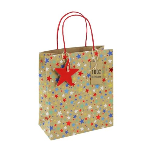 Eurowrap 33958-3C - en uppsättning med 6 Excellia-presentpåsar - medium storlek - 21,5 x 10,2 x 25,3 cm - 210 g - Mönster: flerfärgade stjärnor på en kraftbakgrund - perfekt för: bok, spel, små