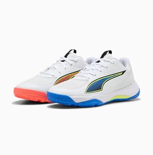 PUMA Accelerate JR 4 spel på handbollsko, vit-glödande röd – ultrablå, 1,5 UK, Puma vit lysande röd ultra blå, 34 EU