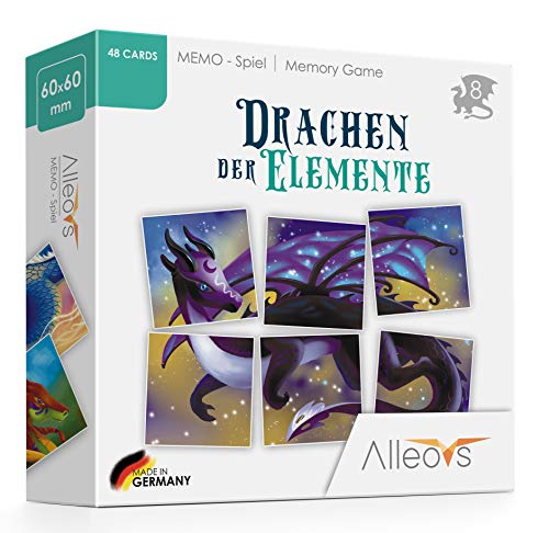 ALLEOVS® - Minnesspel -Dragon of the Elements- för barn från 5 år - Memo-pedagogiskt spel - Dragon-spel - 48 kort - Fostra på ett lekfullt sätt - Främja minne och koncentration