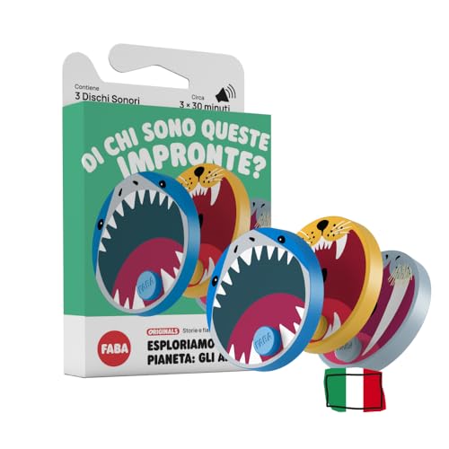 FABA Ljudskivor - Låt oss utforska planeten: djur – samling av 3 ljudskivor för barn 5–10 år – lyssnar på berättare och FABA+, pedagogiskt spel, italiensk version