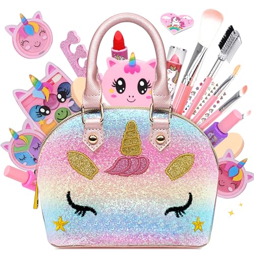 Barnsminkset för flickor, sminkväska för flickor – tvättbar giftfri barnsmink för flickor, klä på sig spel, makeup set, jul, födelsedag, present för 4 5 6 7 8 9 10 år gamla flickor
