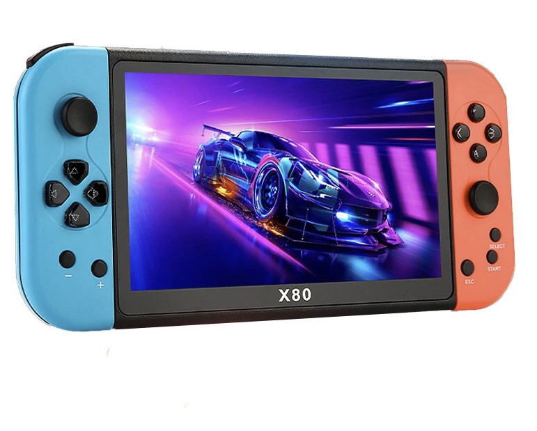 Handhållen spelkonsol X80, 7" HD skärm, 16GB, Portabel spelkonsol med tusentals inbyggda spel