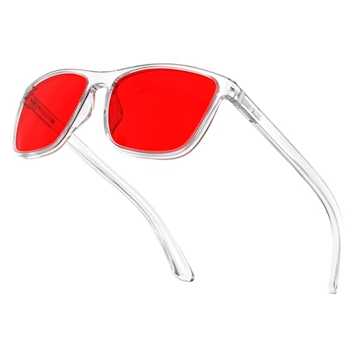 Bloomoak 99 % blått ljus, anti-trötthet, anti-bländning, TR90-material, lämplig för skärm, spel, TV, mobiltelefon, Äkta mörkröd – 100 % – sömnmästare – transparent ram, Regular