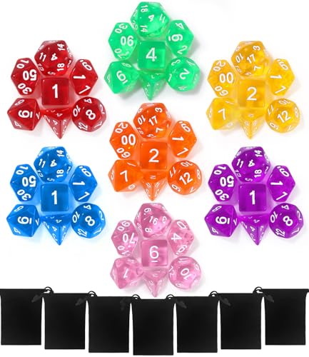 TIDEVAN 49 Delar Polyhedral Spel Tärning Set Bordsspel Tärningar med 7 stycken Svart Påse för Fängelsehålor och Drakar DND RPG MTG D20 D12 D10 D8 D6 D4 Stycke Bordsspel Tärning Set(Transparent)
