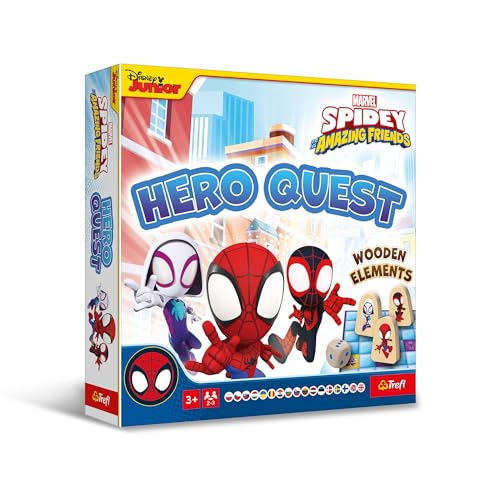 Trefl – Hero Quest, Spidey and His Amazing Friends – Familjebrädspel, Pjäser-figurer i trä och tärning, Hitta superhjältarna, Ett spel för de yngsta med sagohjältar, för barn från 3 år