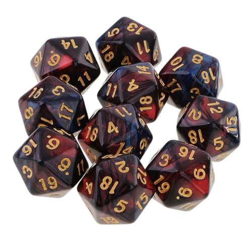 Dzxin DND spel D20 tärningsset, 10 st polyhedral tärning D20 tärningar 20 mm akryl 20-sidig tärningsspeltärning för RPG MTG DND tärningsbordsspel (röd + svart)