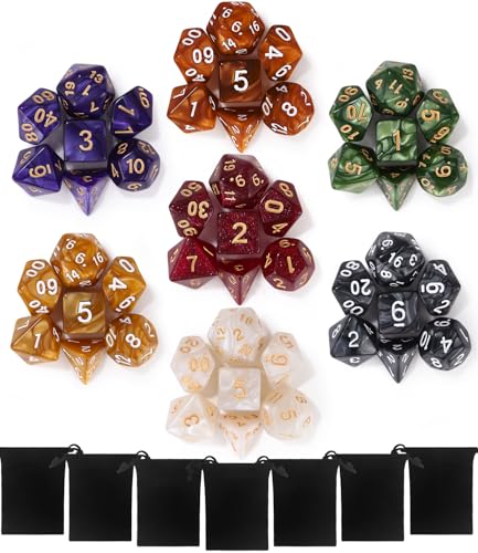 TIDEVAN 49 Stuks Polyhedral Spel Tärning Set,Bordsspel Tärningar med 7 stycken Svart Påse för Fängelsehålor och Drakar DND RPG MTG D20 D12 D10 D8 D6 D4 Dubbel Färg i Ett Stycke Bordsspel Tärning Set