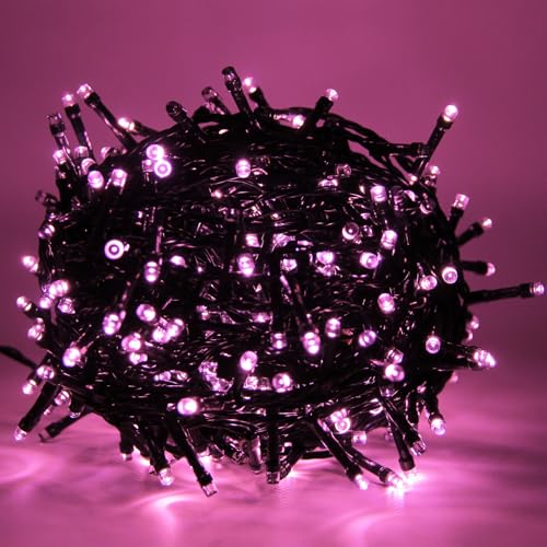 LUCCIKA® serie ljussträng 25 meter med 500 LED rosa färg för utomhus- och inomhusbruk 31V styrenhet med 8 spel och minneskabel grön