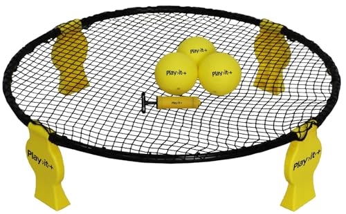 Home It® Roundnet-set | Bounce Ball spel utomhus | Högkvalitativt 360° spikebollset med metallring, ben och 3 bollar | inkl. pump och bärväska för trädgård, park och strand