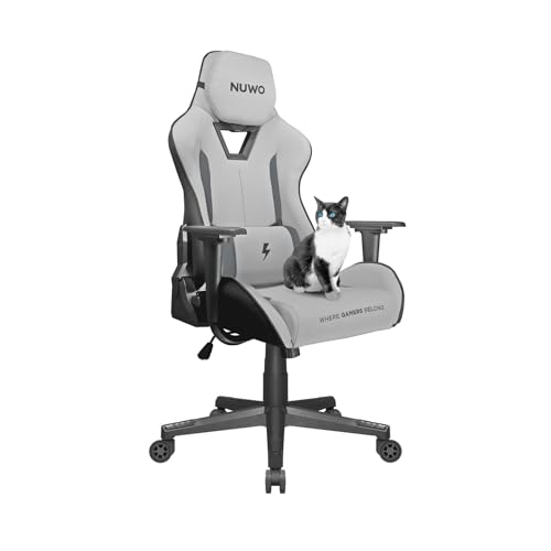 Nuwo Jupiter Ergonomisk spelstol med armstöd, justerbart nackstöd och höjd, spelfåtölj i textil, ländryggsstöd, grå