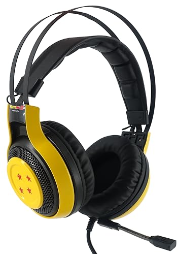 TEKNOFUN - Officiell Dragon Ball Z-licens - Hörlurar - Spelhörlurar - 3,5 mm uttagskontakt - 2,2 m sladd - Justerbart pannband - Gul - För barn och vuxna - 811236