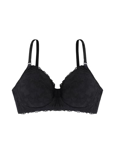 DeFacto Bralette spets för kvinnor – dambh, mjuk och ventilerande bh (svart, L), svart, L