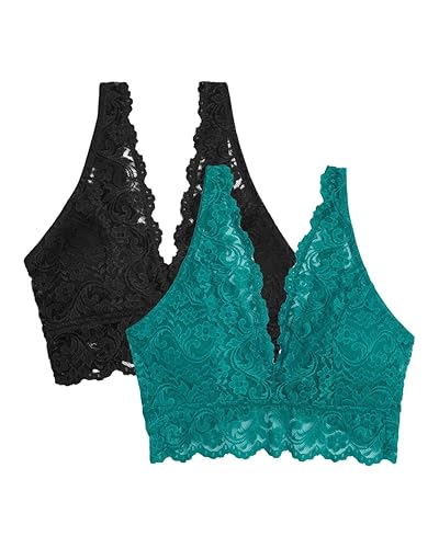 Leg Avenue Dam 2 st uddig spets strass strappy bralette underkläder, svart, M (förpackning med 2)
