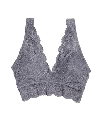 DeFacto Bralette spets för kvinnor – dambh, mjuk och ventilerande bh (grå melange, XS), Grå melange, XS