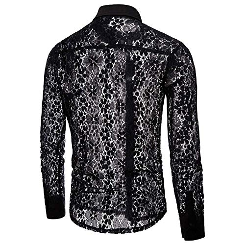 Spetsskjorta herr långärmad transparent blommor spets skjorta långärmad skjorta smal passform skjortor män skjortor långärmad eleganta muskelskjortor nätskjorta undertröja tröja klubbkläder toppar,