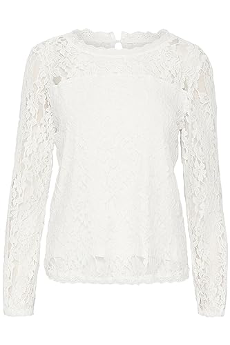 Cream Dam blus spets topp långärmad rund hals scallop kant vanlig passform dam, Snövit, L