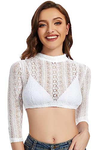 AMZHOTER Dirndl blus dam Dirndlblus spets traditionell blus långärmad vit högstängd blus Oktoberfest 32–54, Vit, 36
