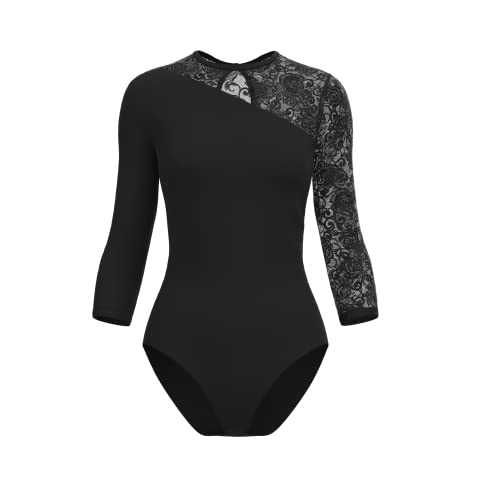 Basilica Dancewear BAW0262 Amy dam långärmad spets trikå, XL, svart