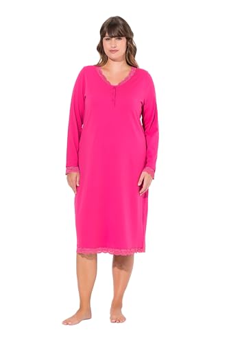 Ulla popken dam, spets, V-hals, långärmad nattlinne, rosa, 46, ROSA, 46