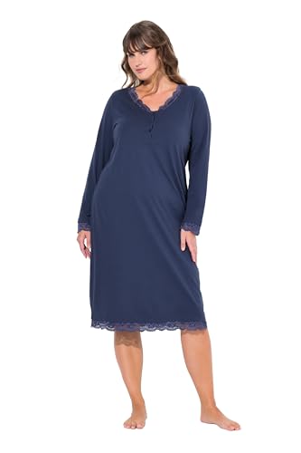 Ulla popken dam, spets, V-hals, långärmad nattlinne, mörklila, 50, Mörk lila, 50