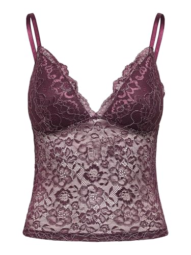 ONLY Dam Onlchloe spets glitter linne topp acc, vinetasting, L, Vinetasting, L