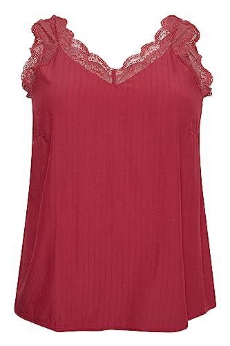 Kaffe Curve Plusstorlek dam linne spets kant V-ringad vanlig passform höftlängd, Soltorkad tomat, 44 Grande taille