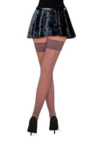 Annes styling - Kvinnor Ryggsöm 20 Denier Sensuella Sexiga Lår Spets Sexiga Strumpor Med Silikon, pärlor, XXL-3XL