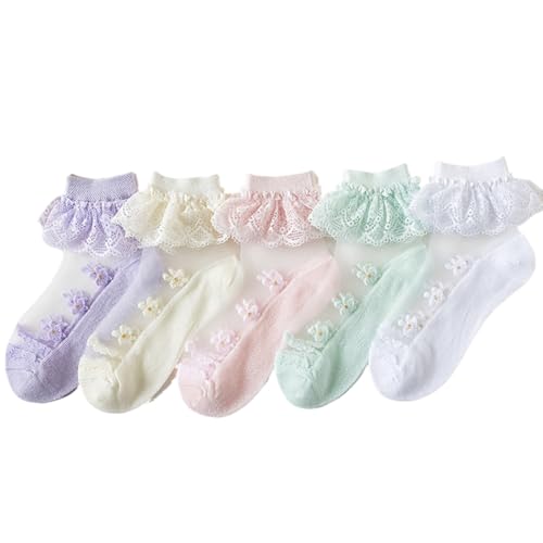 IYOU Prinsessa flickor volang strumpor rosa blomma tunna sommar spets luftiga strumpor (5 par), Blandade färger, 7-9 Years