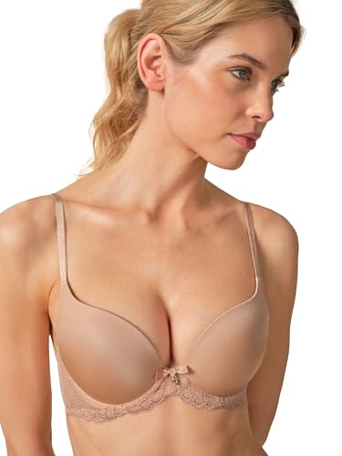 Dorina Super Push up-bh för kvinnor med bygel, formbygel och spets T-shirt, bh, Claire, vit, beige, svart, svart, 70D