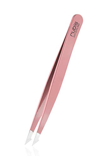 Rubis pincett Evolution 2-i-1 – spetsig, sned och fin – splitterpincett för inåtväxande hår och splitter – pincett ögonbryn plockar – rosa
