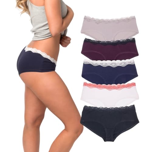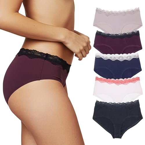 Emprella Kvinnors spetsunderkläder hipstertrosor bomull-spandex-10-pack färger och mönster kan variera, blandade