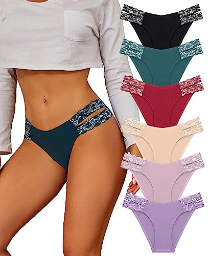 FINETOO Sömlösa underkläder för kvinnor fräcka bikinitrosor högt skurna V-midja spetsunderkläder kvinnor söt bikini 6-pack, 6-pack-b, M