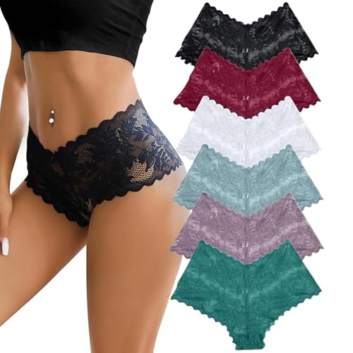 HAGOT 6 stycken spetstrosor för kvinnor, sexiga spetsunderkläder för kvinnor, hipstertrosor, ultratunna trosor, boxershorts, L